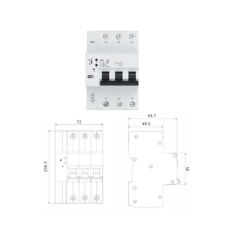 3P plastic intelligent miniature circuit breaker 6-63A 230V intelligent Internet of Things rail-mounted local remote automatic control.