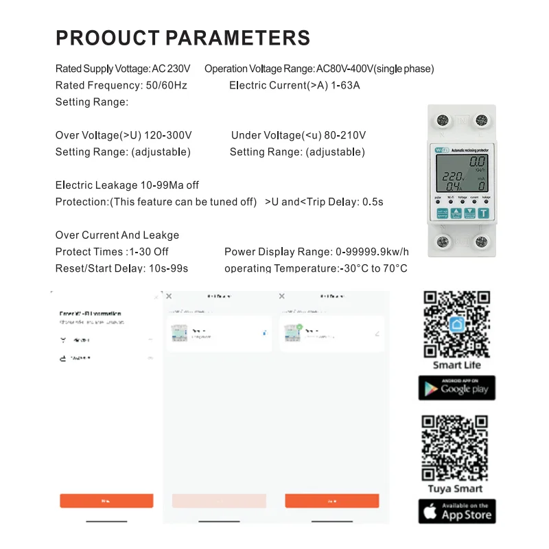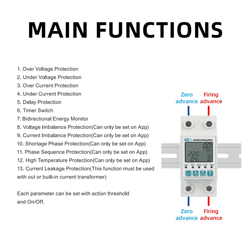 Home - Products - Energy Meter - 63A Tuya WiFi timer energy power meter smart life smart leakage overvoltage protector plastic relay circuit breaker.