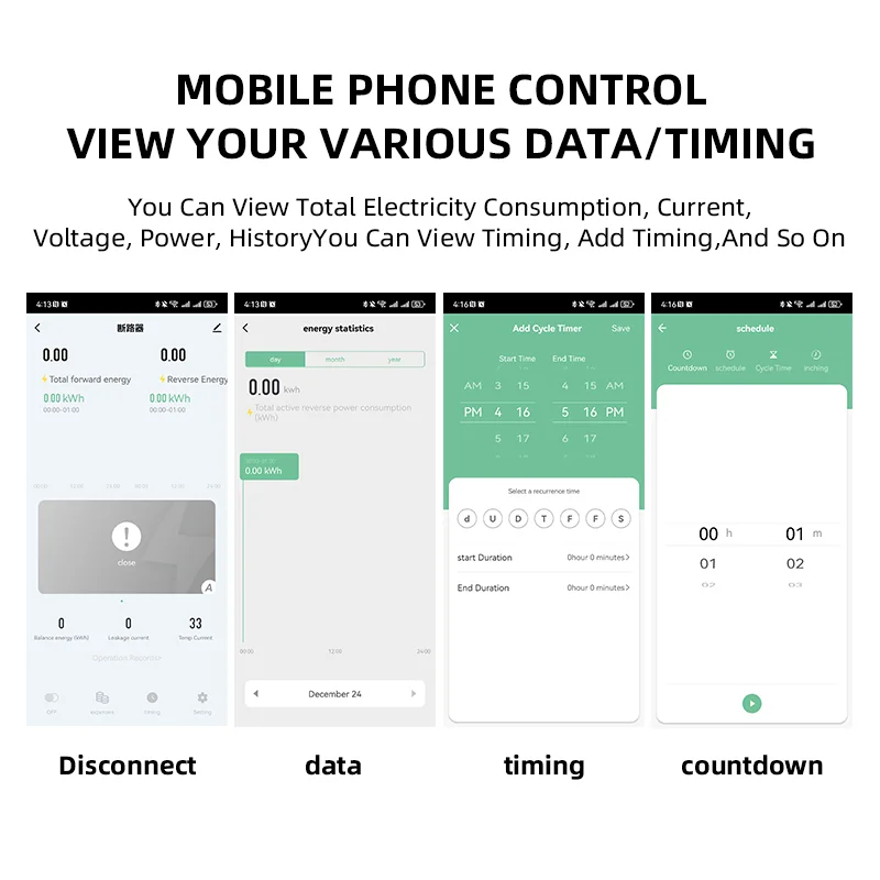 63A Tuya WiFi timer energy power meter smart life smart leakage overvoltage protector plastic relay circuit breaker.