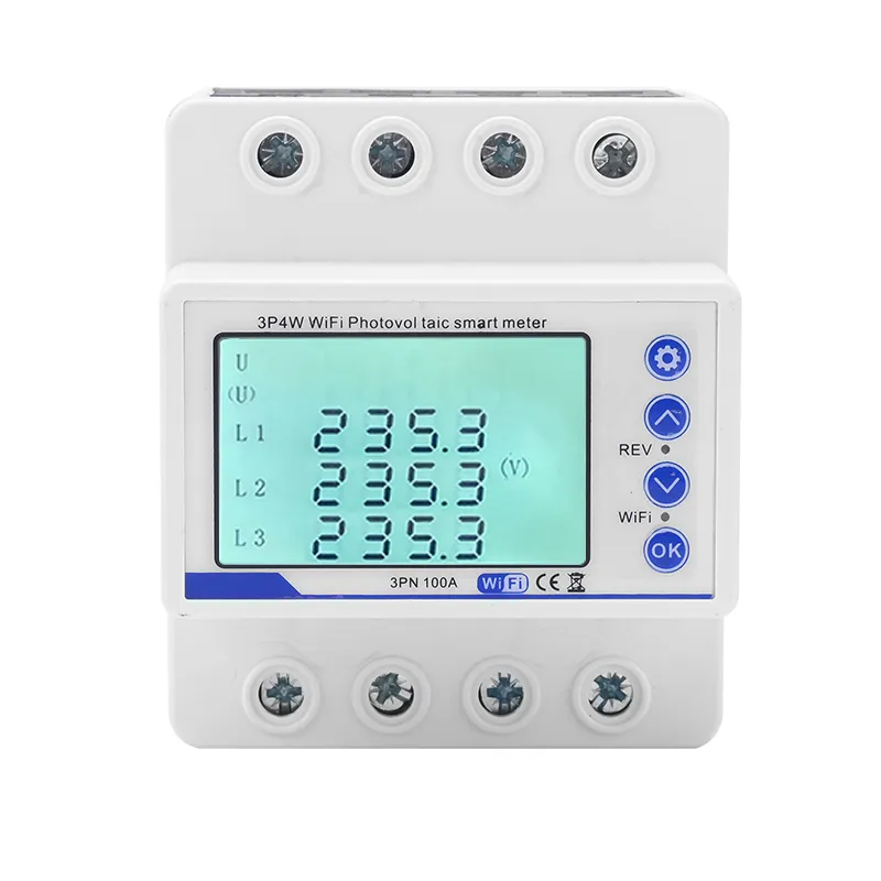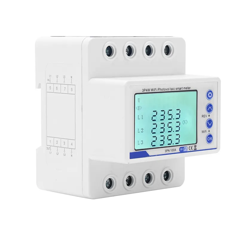 Three-phase DIN rail mounted reclosing protector for overvoltage, undervoltage, and phase failure protection.