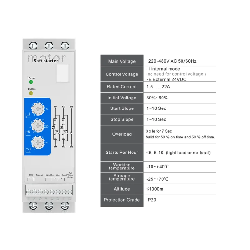 LYR-S Soft Starter 220V Electronic Technology 0.75 - 11KW Torque Limiter Asynchronous Motor Starting Phase Built-in Bypasser.